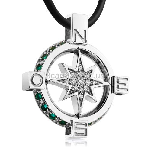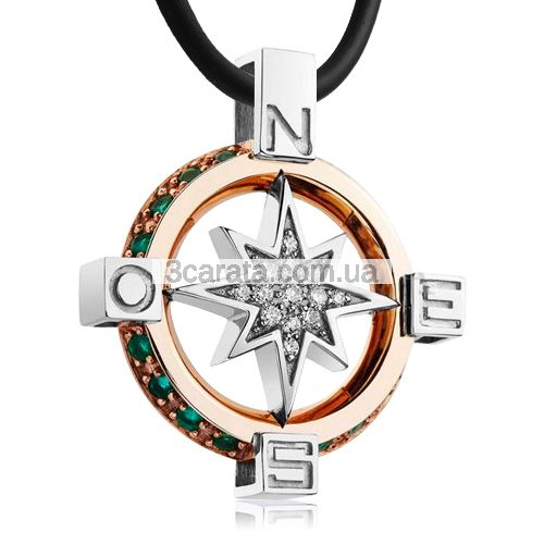 Золотий кулон з діамантами і смарагдами «Роза вітрів»