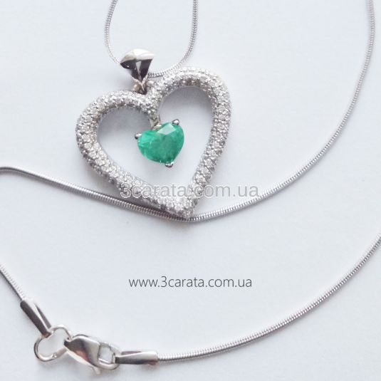 Золотий кулон з смарагдом ограновування сердце «Love heart»