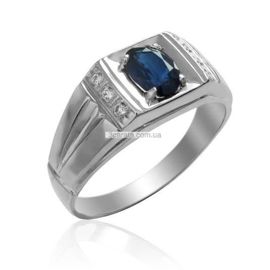 Золотий перстень з діамантами і сапфіром «BOSS»