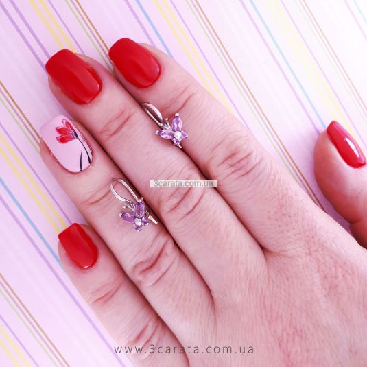 Дитячі сережки метелики на французській застібці з аметистами «Little Miss»