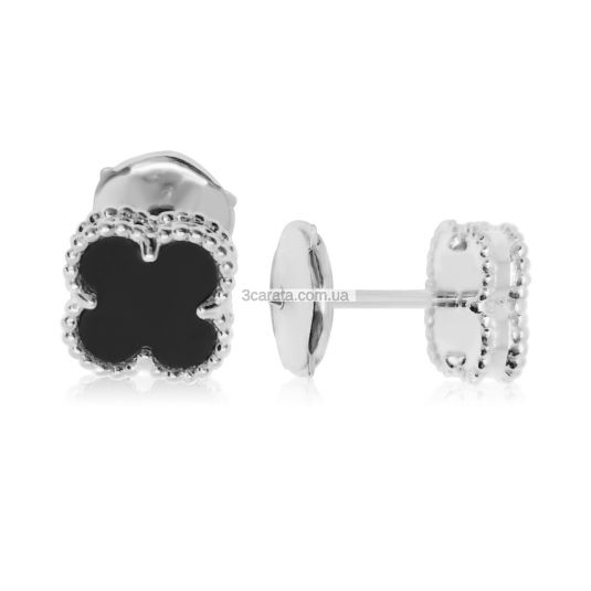 Золоті сережки пусети аля Ван Кліфф «Fleur d'onyx»