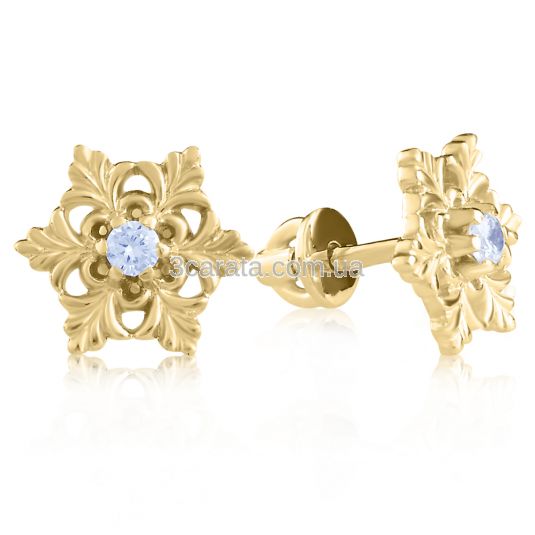 Золоті сережки пусети з фіанітами «Чарівні сніжинки»