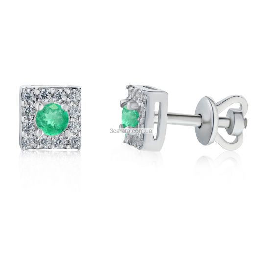 Золоті квадратні сережки з смарагдами «Магічний квадрат»