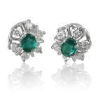 Розкішні сережки з розсипом діамантів із золота 585 проби з смарагдами. Вага виробу - 6,36 грама.