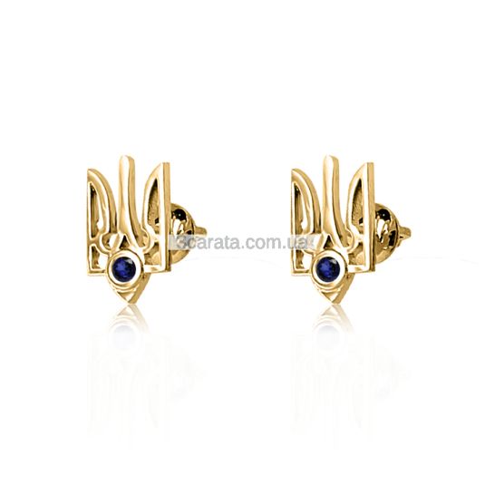 Золоті сережки-герб з сапфіром «Коштовний Тризуб»