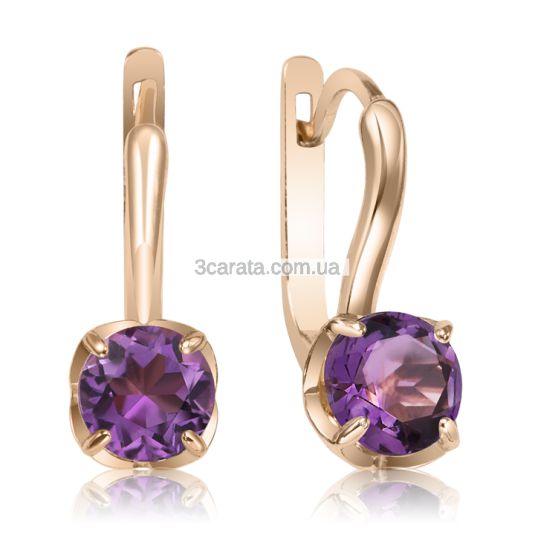 Загадковий і чарівний аметист в сережках із золота просто притягує погляди. Про аметисті відомо безліч легенд, зокрема вважається, що він може відродити любов у людині, якому він був подарований. «Аметист здатний викликати любов до того, хто дарує навіть в тому випадку, якщо хто прийняв дарунок до цього був закоханий в іншого», - такі слова були вирізані на одній із глиняних табличок шумерських жерцем ще 30 століть тому! Характеристики вставок: аметисти - 2 шт. загальною вагою 1,42 Ct. , огранка коло (по 6 мм).