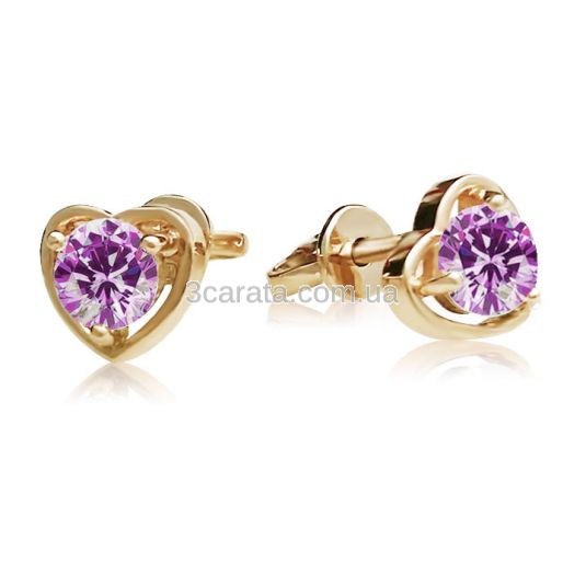 Золоті сережки-сердечка пусети з аметистом «Preferita»